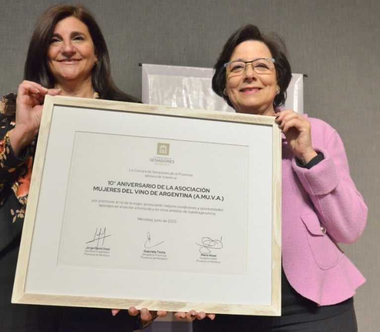 Reconocimiento a la labor de A.MU.VA por su aporte al desarrollo del vino argentino con perspectiva de género y su compromiso con la igualdad en el sector vitivinícola.